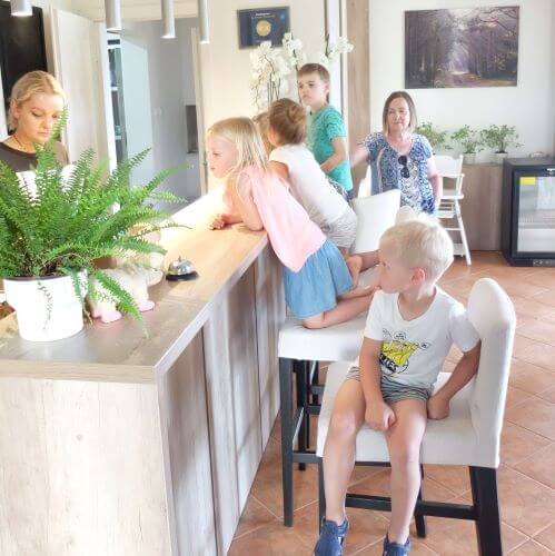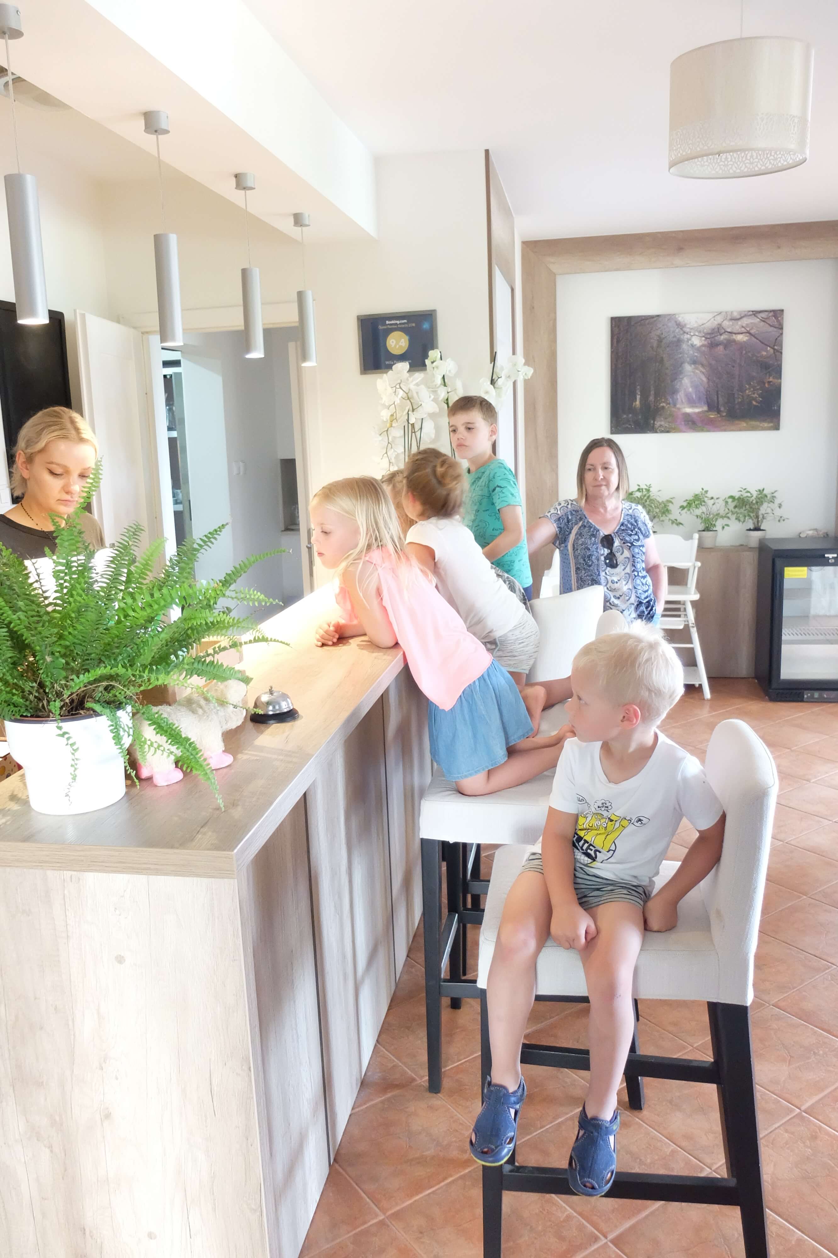 - Udogodnienia dla dzieci: łóżeczka z pościelą, foteliki do karmienia, podgrzewacz do butelek, plastikowe sztućce i naczynia, nocnik, podest, wanienka, osłony na gniazdka, przewijak, wózek.