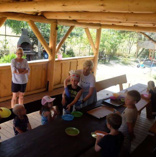 - Każdego dnia atrakcje dla dzieci i dorosłych (animacje, warsztaty, karmienie zwierząt, praca w ogrodzie warzywnym, wycieczka traktorem do lasu, ognisko z poczęstunkiem, jogging po lesie, aerobik).